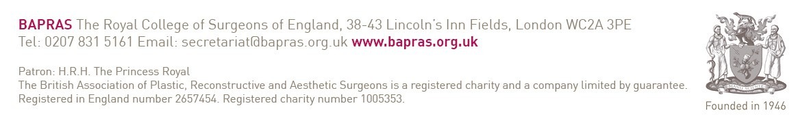 BAPRAS will use your personal information to administer your account and to provide information or request feedback about the events you register for or other products or services you order from us. Please follow this link for further information on how your data is used or stored.